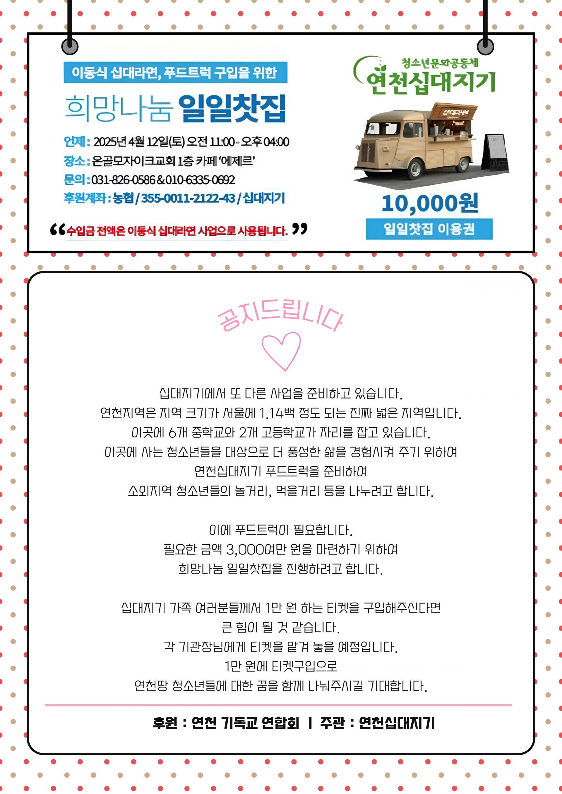 연천십대지기푸드트럭을 준비하여 소외지역 청소년들을 놀거리, 먹을거리등을 나누려고고 합니다.